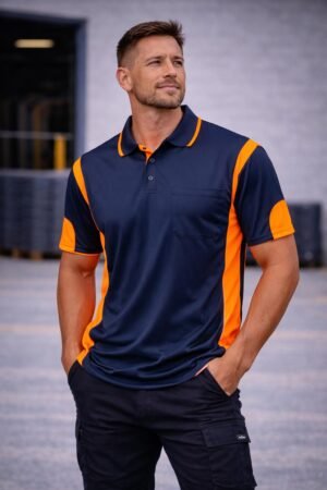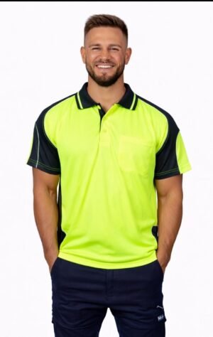 HI VIS SHORT SLEEVE MICROMESH REFLECTIVE POLO WITH POCKET
