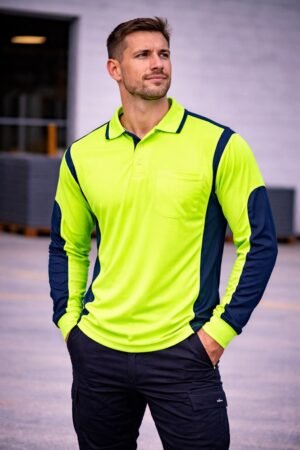 HI VIS LONG SLEEVE MICROMESH POLO WITH POCKET