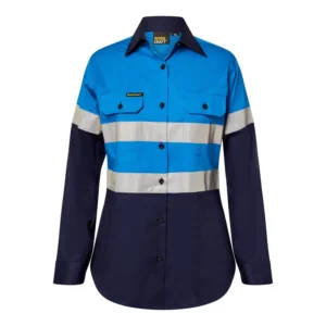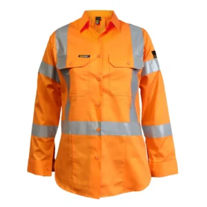 LADIES LIGHTWEIGHT HI VIS LONG SLEEVE VENTED REFLECTIVE SHIRT WITH X PATTERN-NSW RAIL COMPLIANT