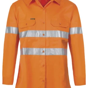 LADIES LIGHTWEIGHT HI VIS LONG SLEEVE VENTED REFLECTIVE COTTON DRILL SHIRT